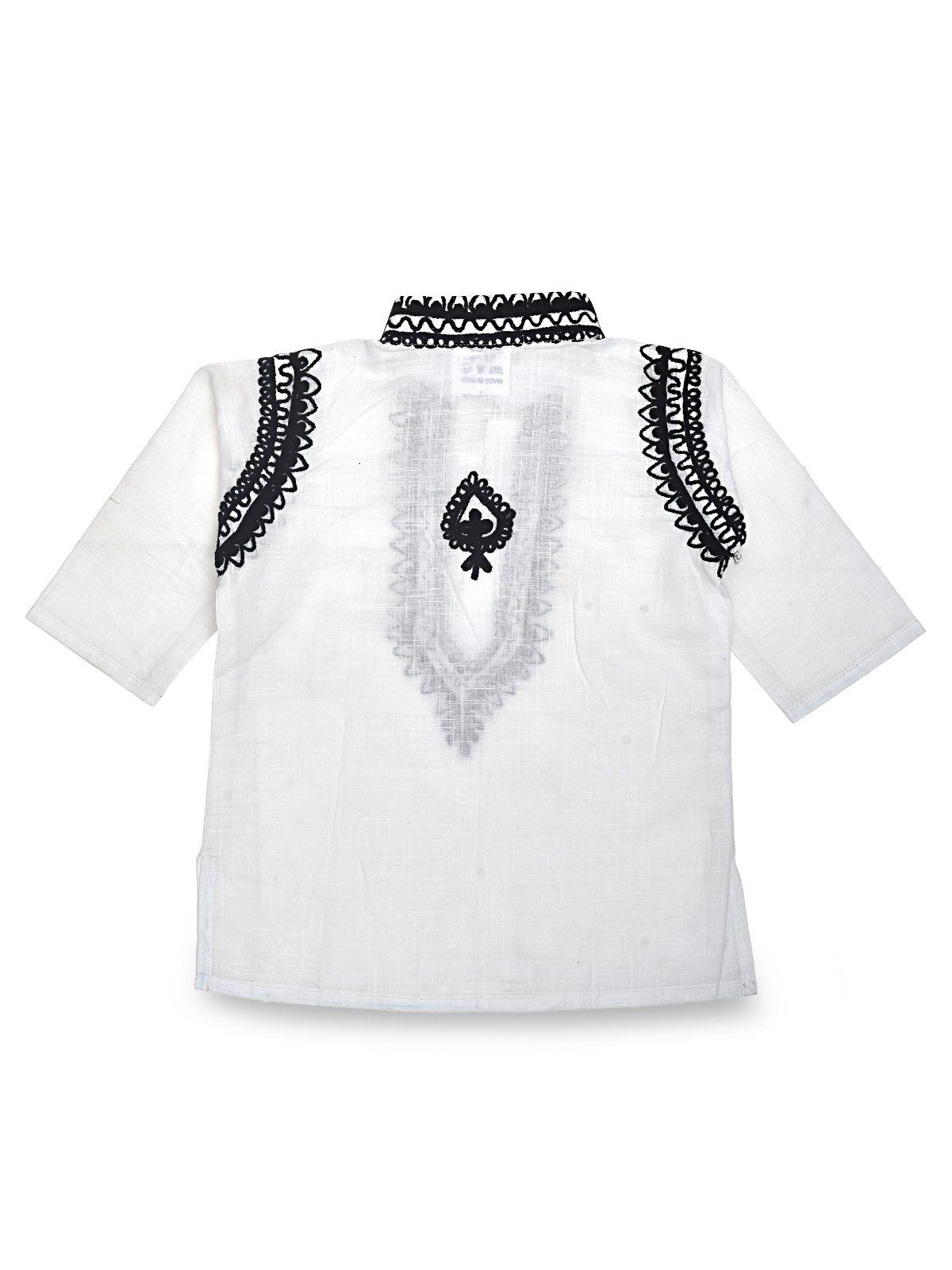 Boys White Cotton Kurta Pyjama with Black Kashmiri Ari Work