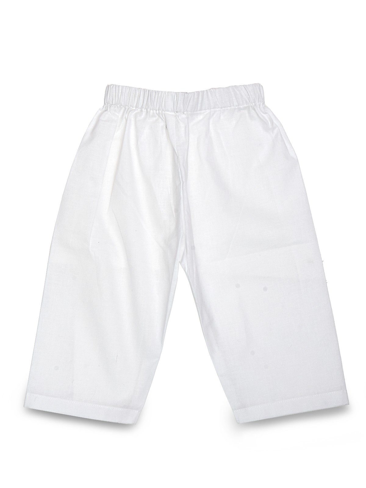 A stylish white kurta pyjama set featuring intricate black Kashmiri Ari embroidery on the kurta. Made from soft, breathable cotton, it combines traditional elegance with all-day comfort—perfect for festivals, special occasions, or casual wear for your baby boy.