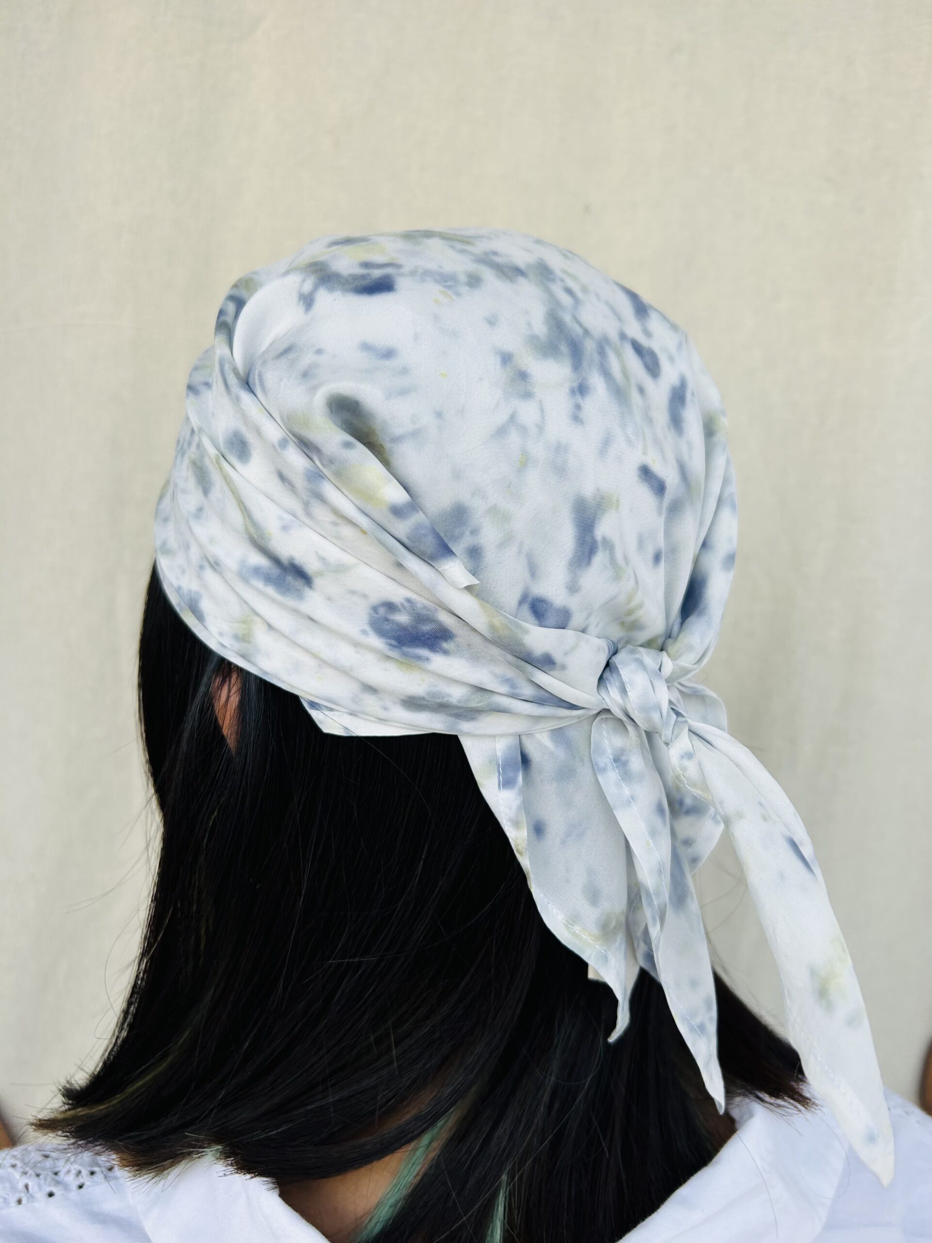 Eco-printed Silk Bandana – Blue