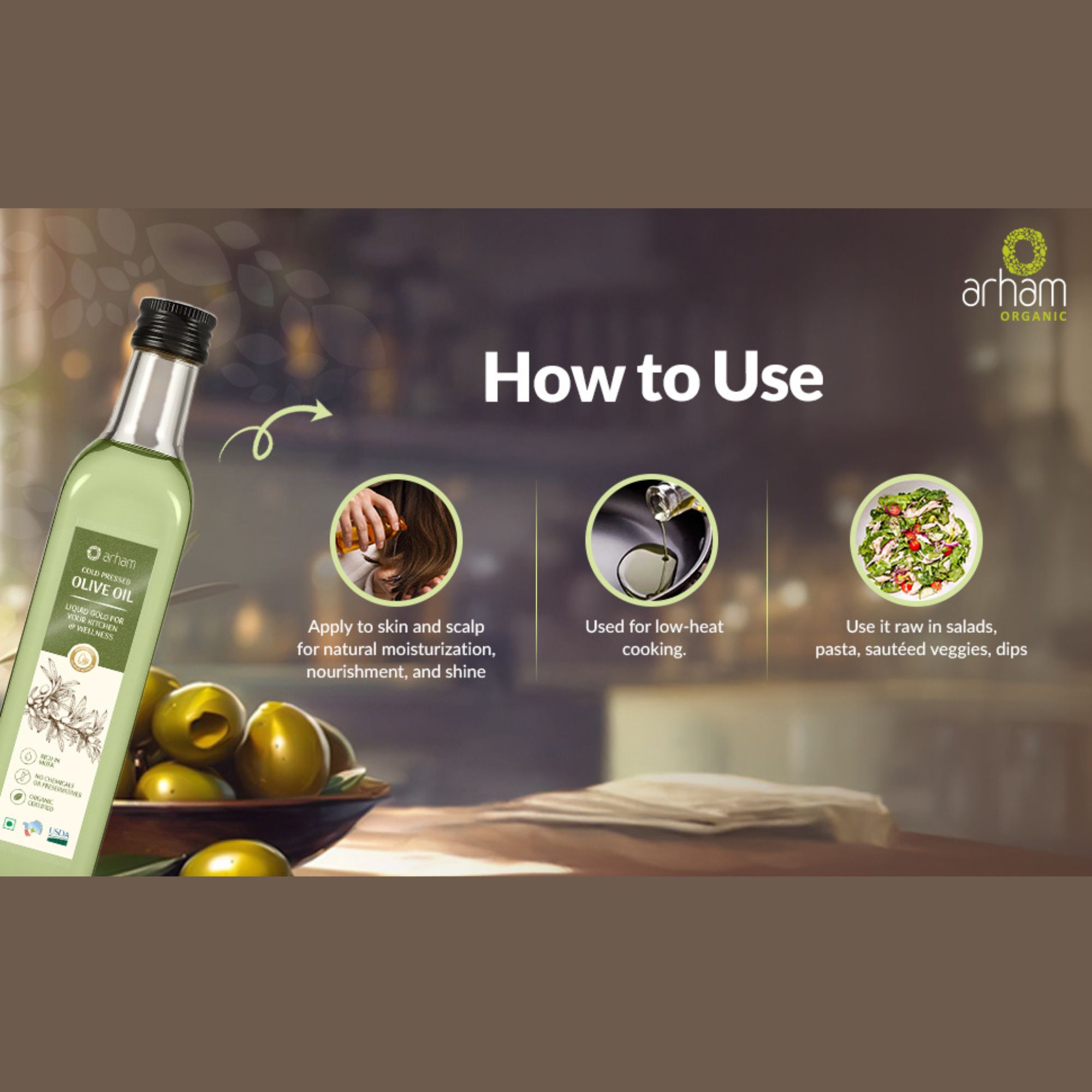 Experience the goodness of Arham Organic Extra Light Olive Oil, a premium-quality oil extracted from the finest olives. With its light texture and mild taste, this olive oil is perfect for both cooking and skincare, making it a must-have in every kitchen.