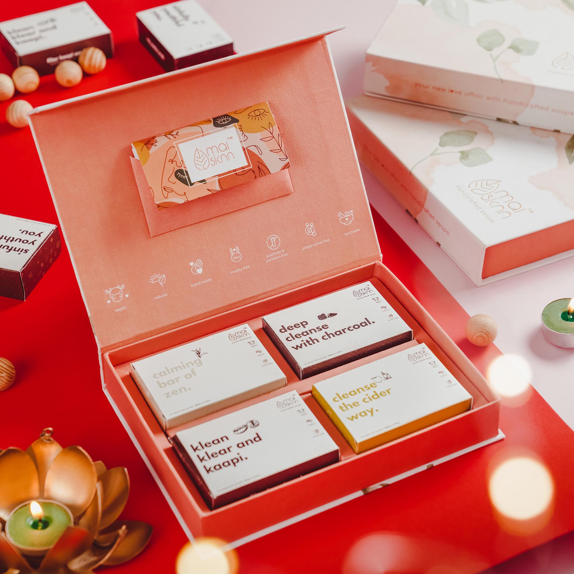 Set of 4 carefully crafted soaps in an uber premium gift box.