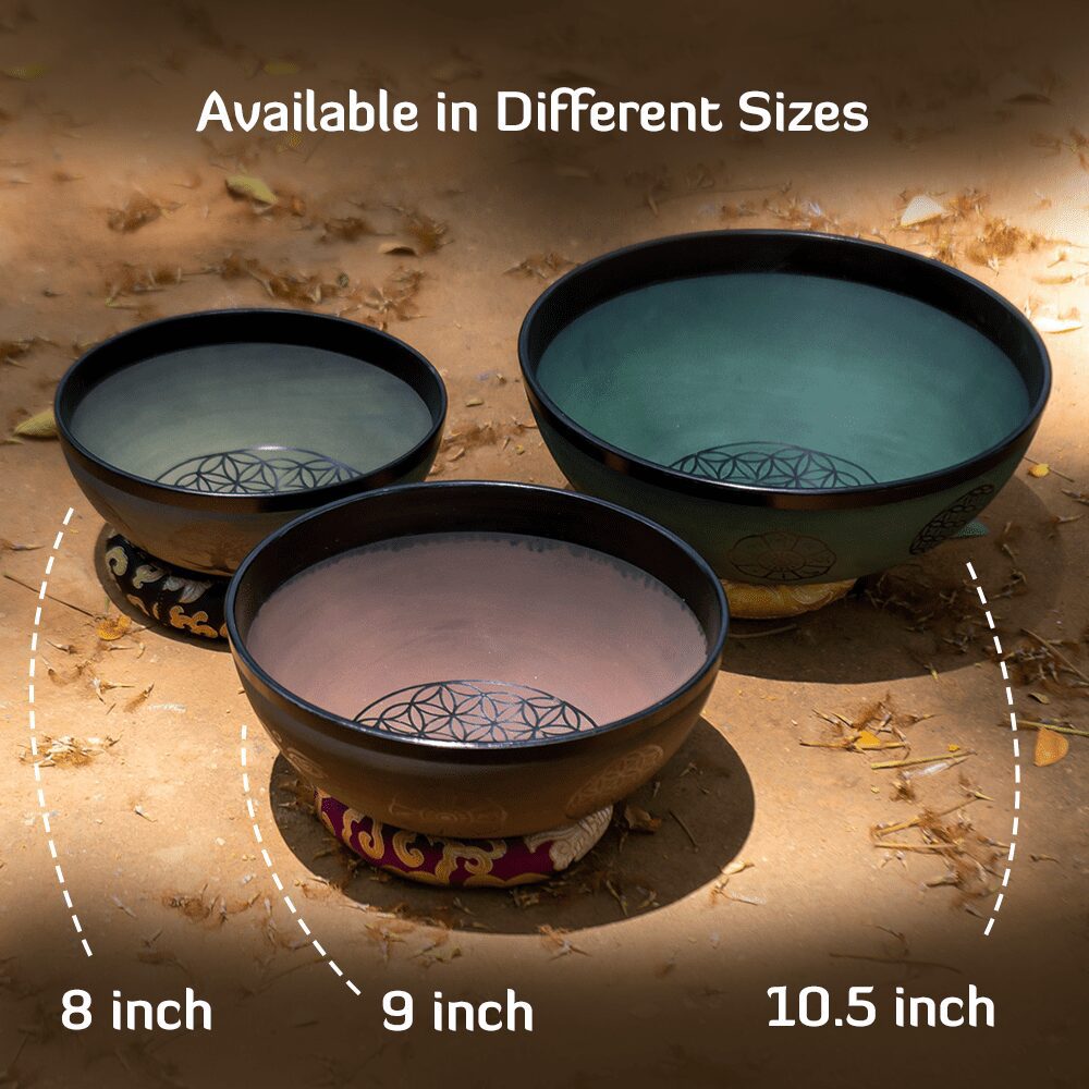 Each bowl within this foundational selection is adorned with the Flower of Life symbol in the middle, representing the essence of creation and interconnectedness.