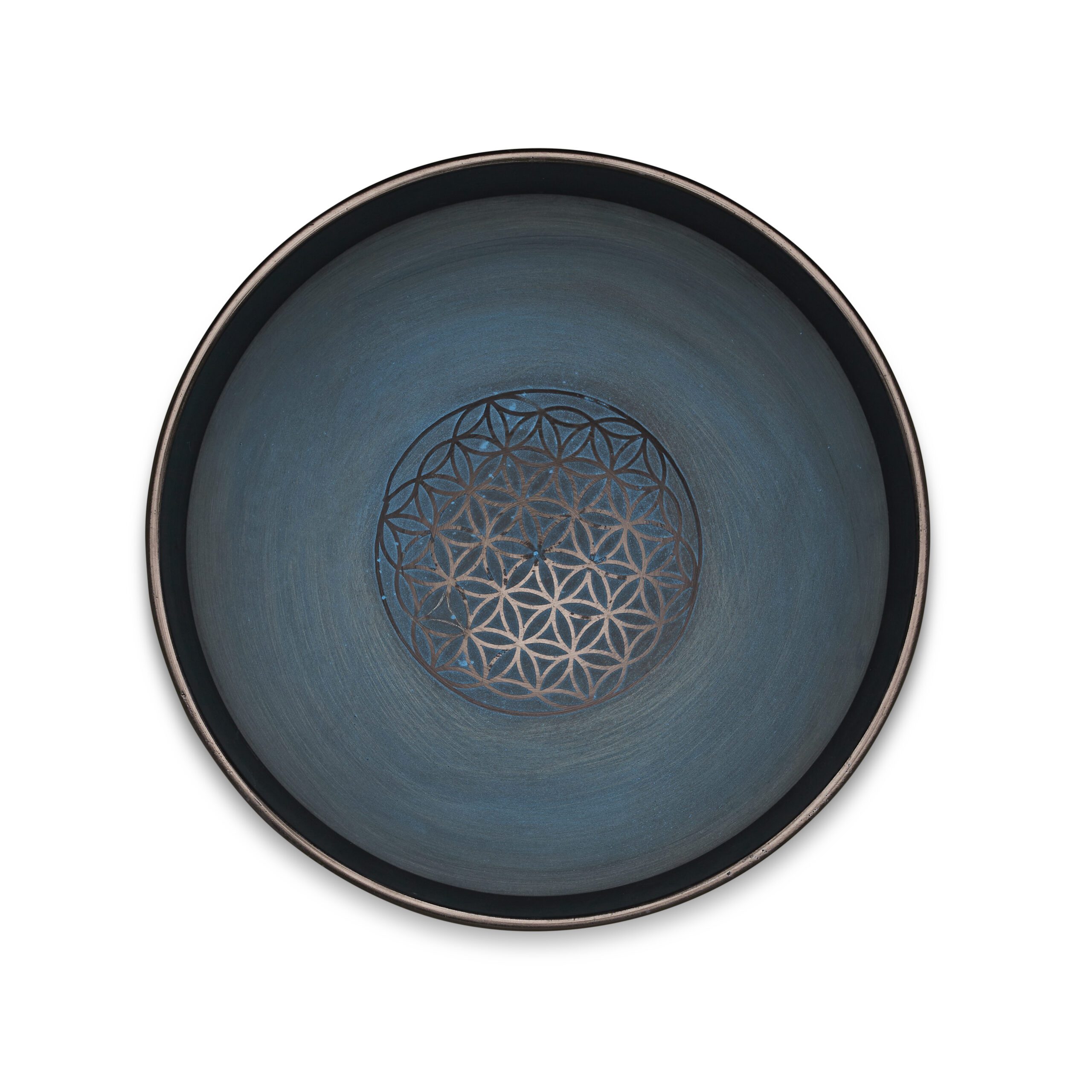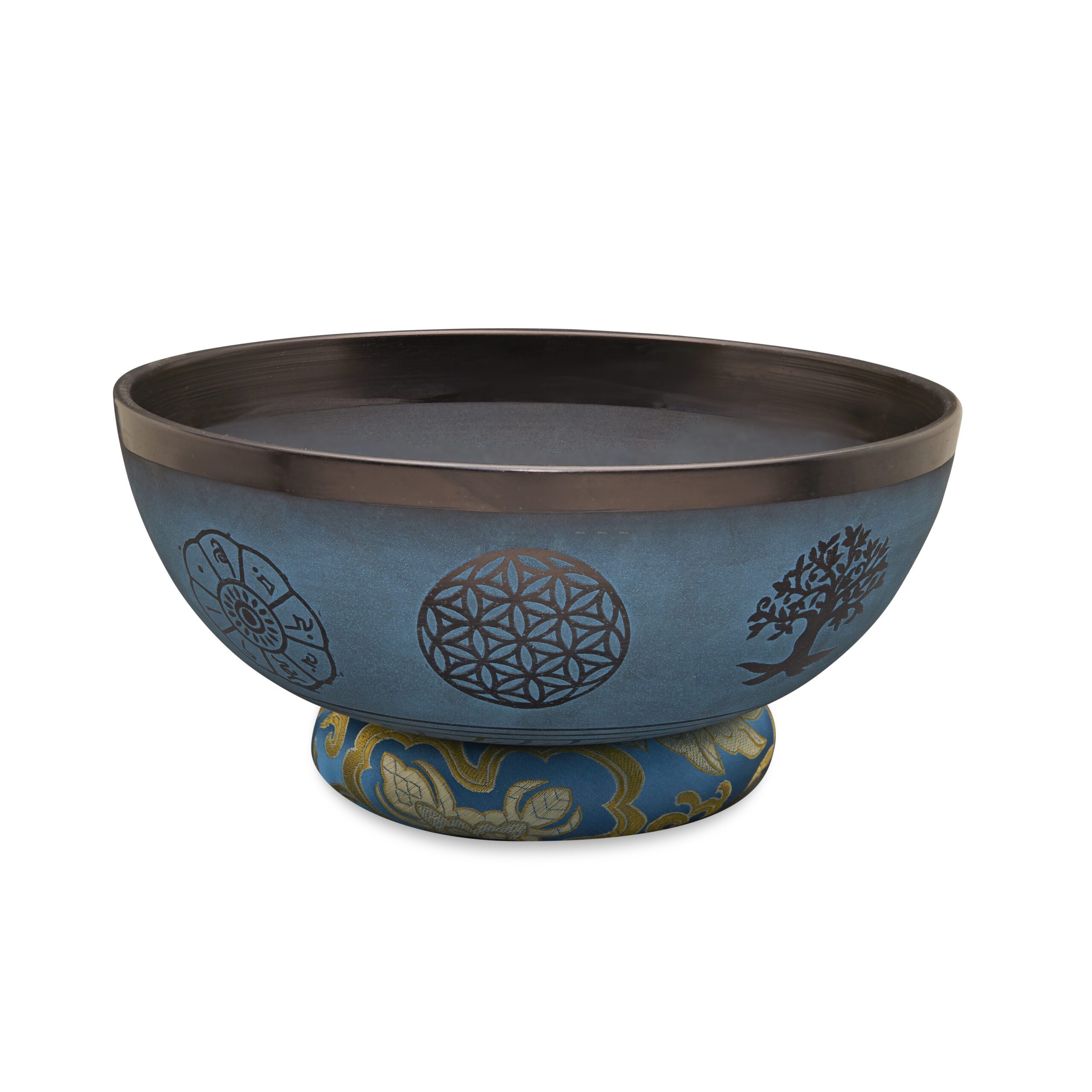Flower of Life with Sacred Symbols Singing Bowls | Blue