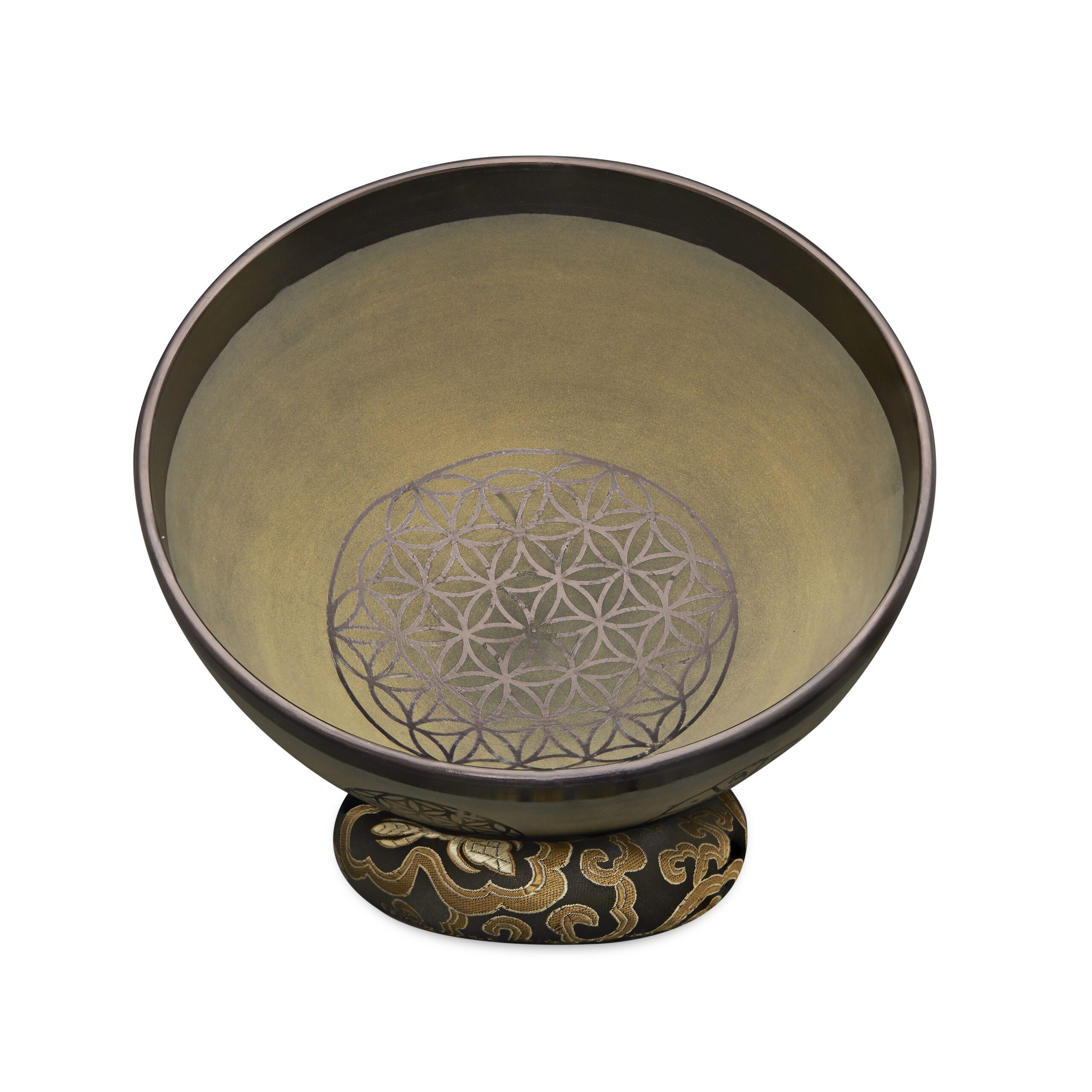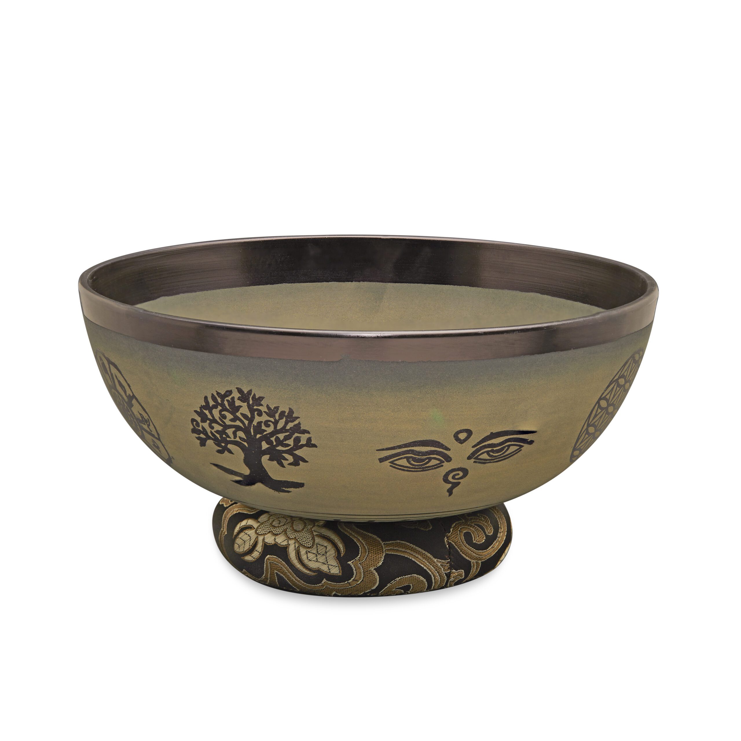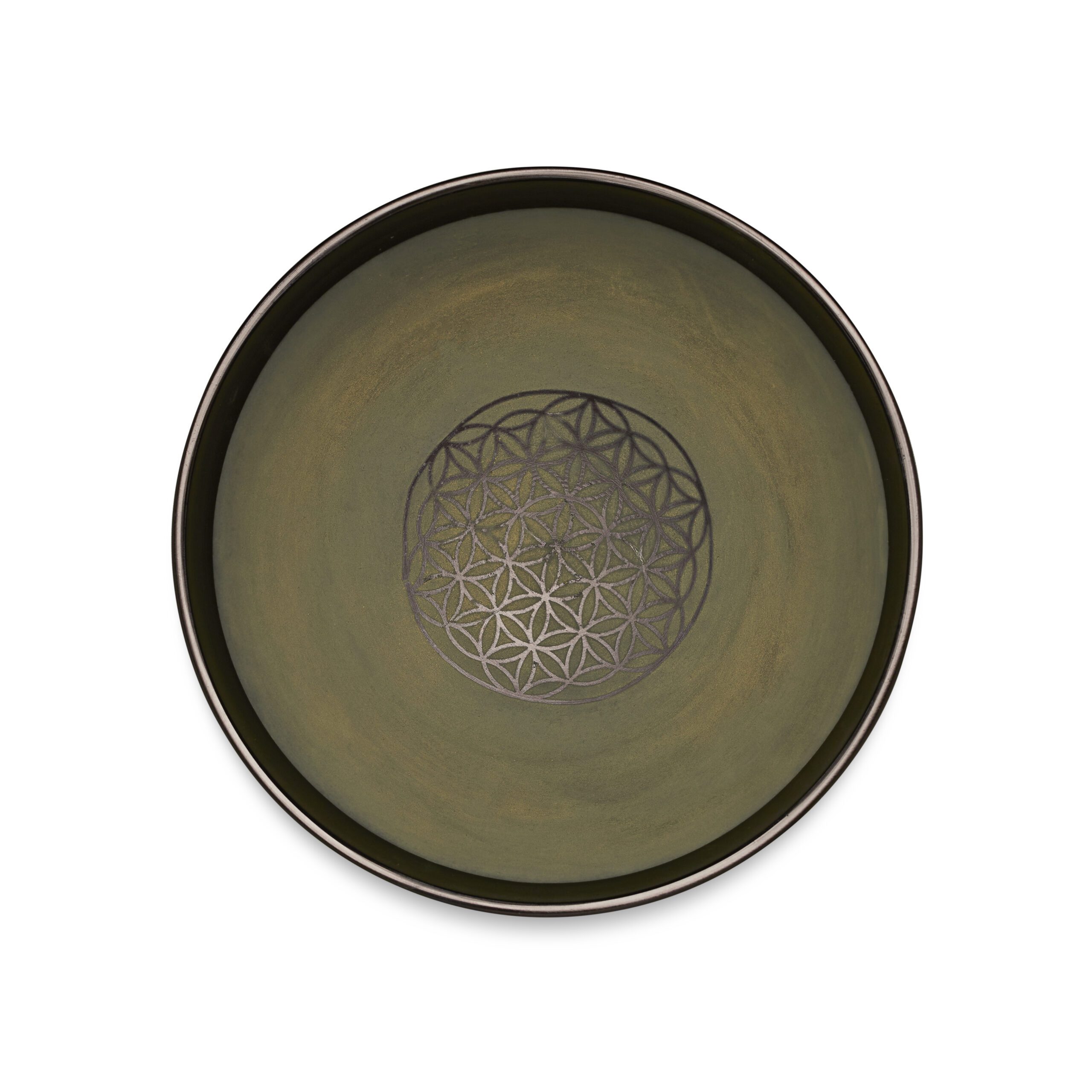Flower of Life with Sacred Symbols Singing Bowls | Olive Green