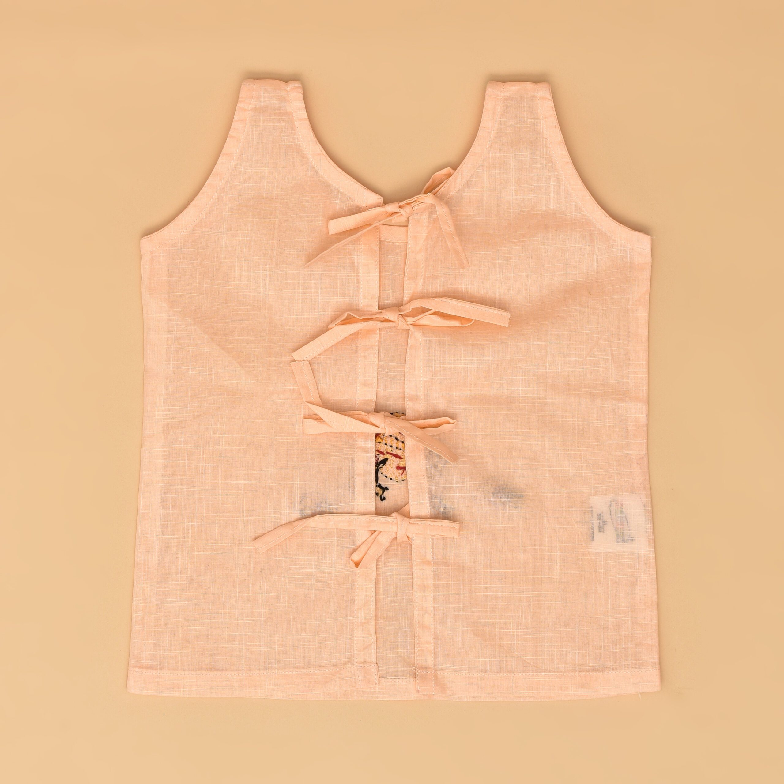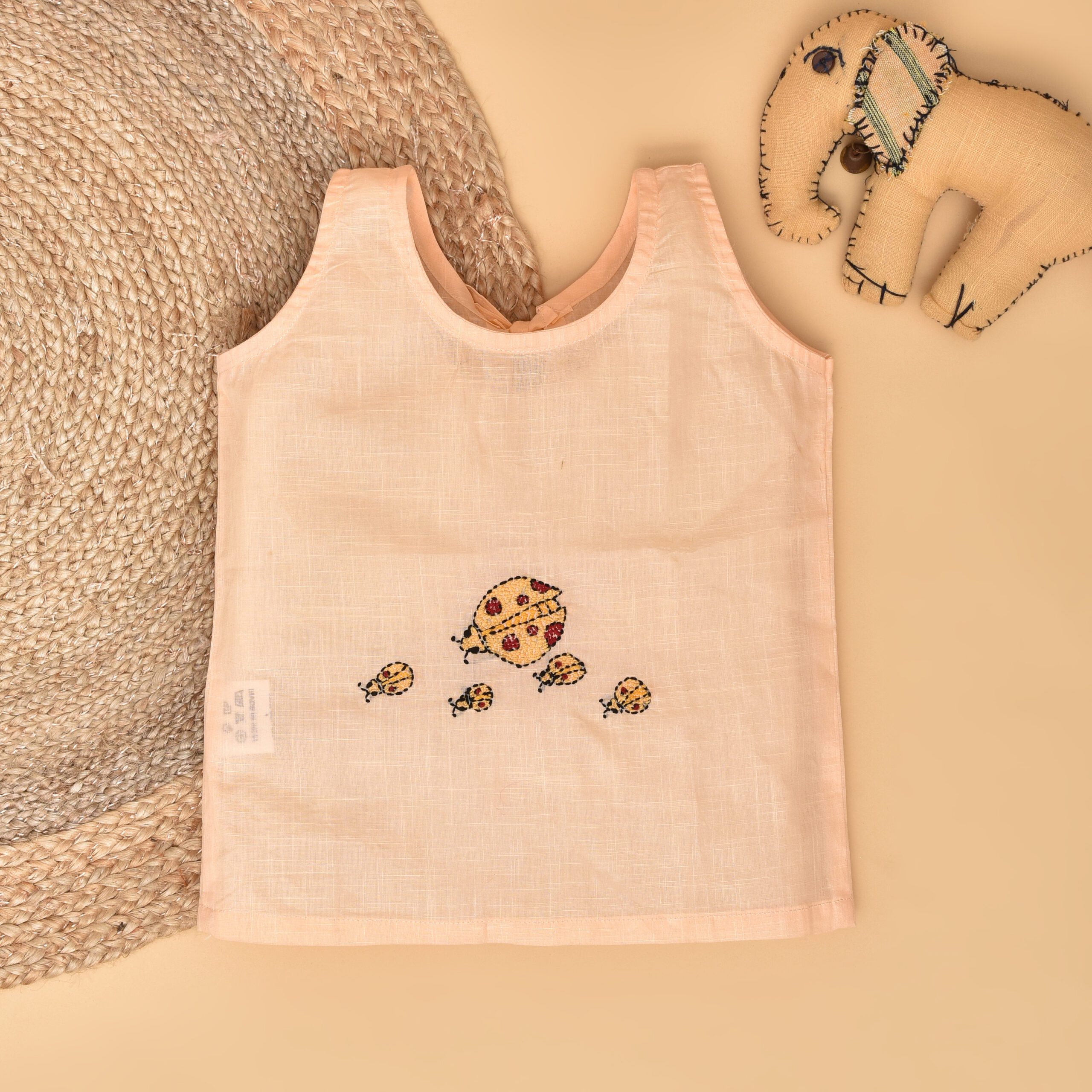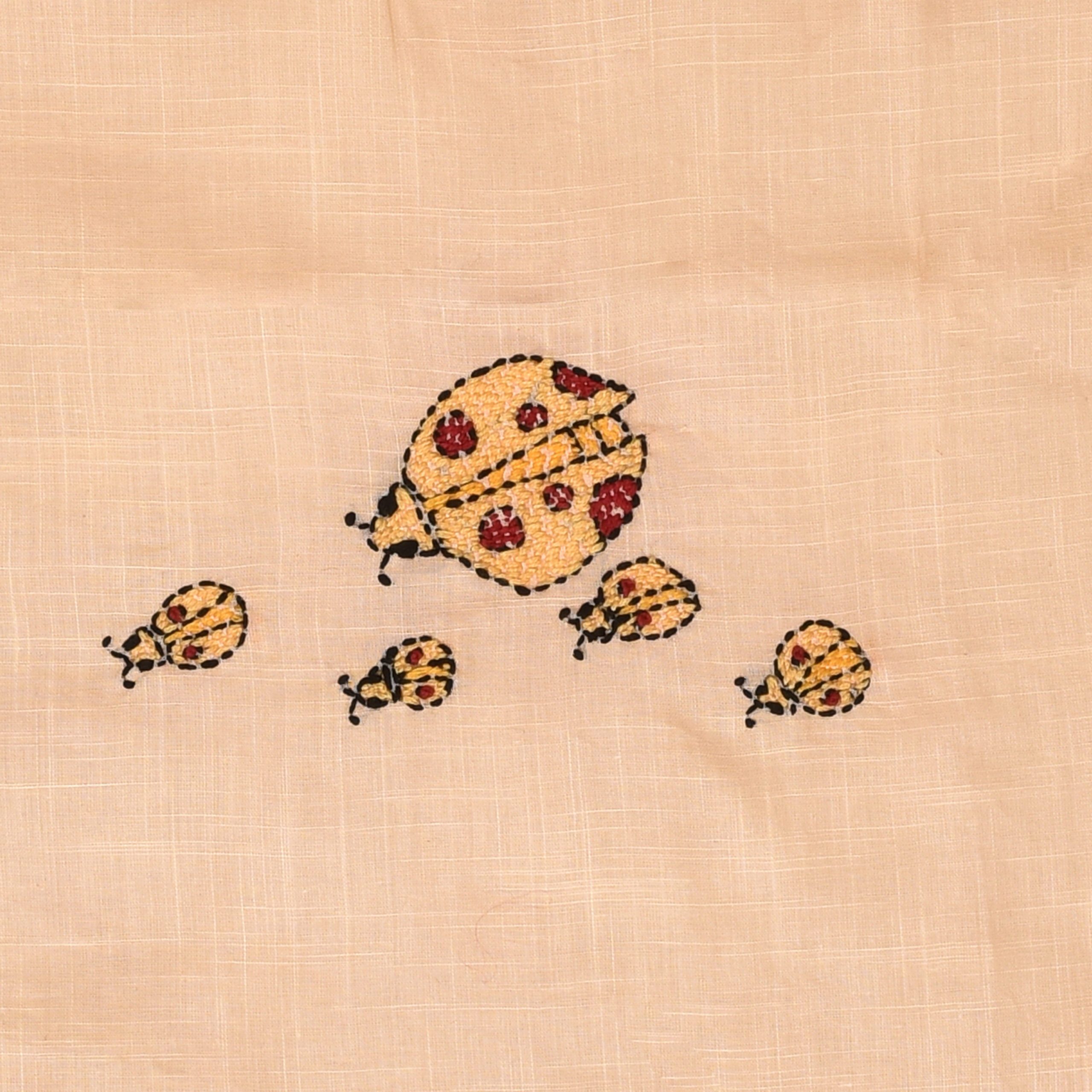 Peach Cotton Back Open Jabla for Babies with Ladybug Design Hand Embroidery