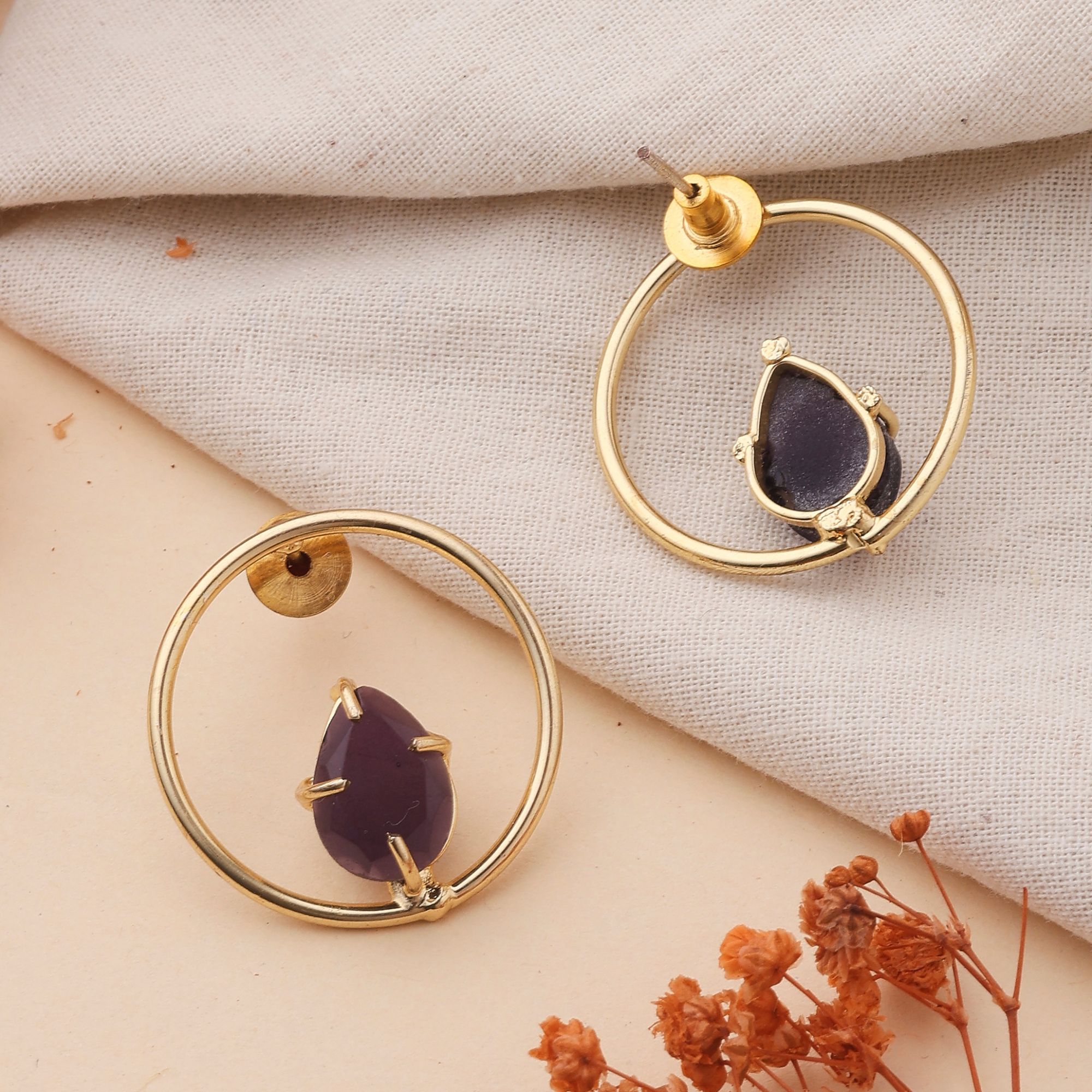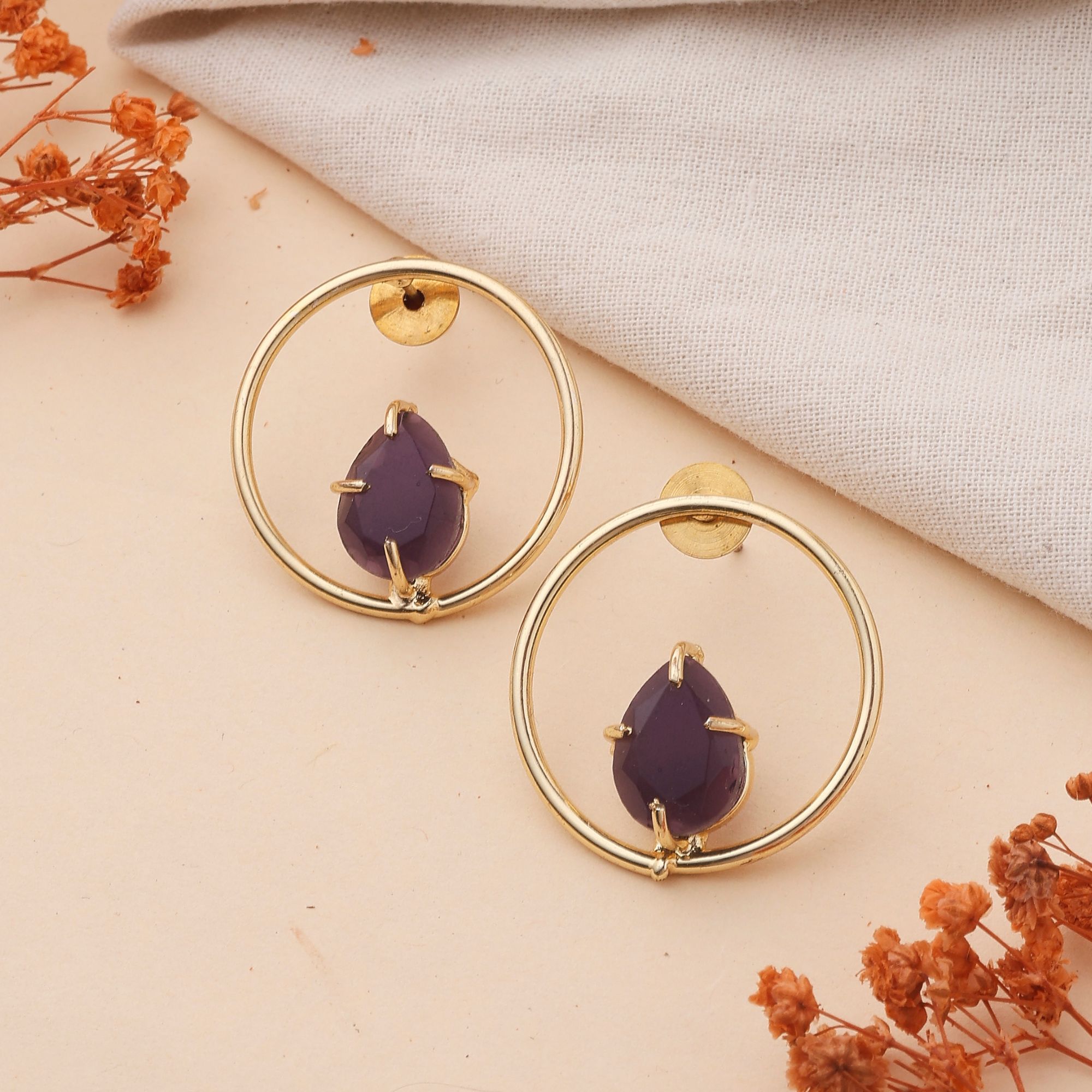 lluminate your style with our Round Amethyst Stone Earrings. These captivating earrings
