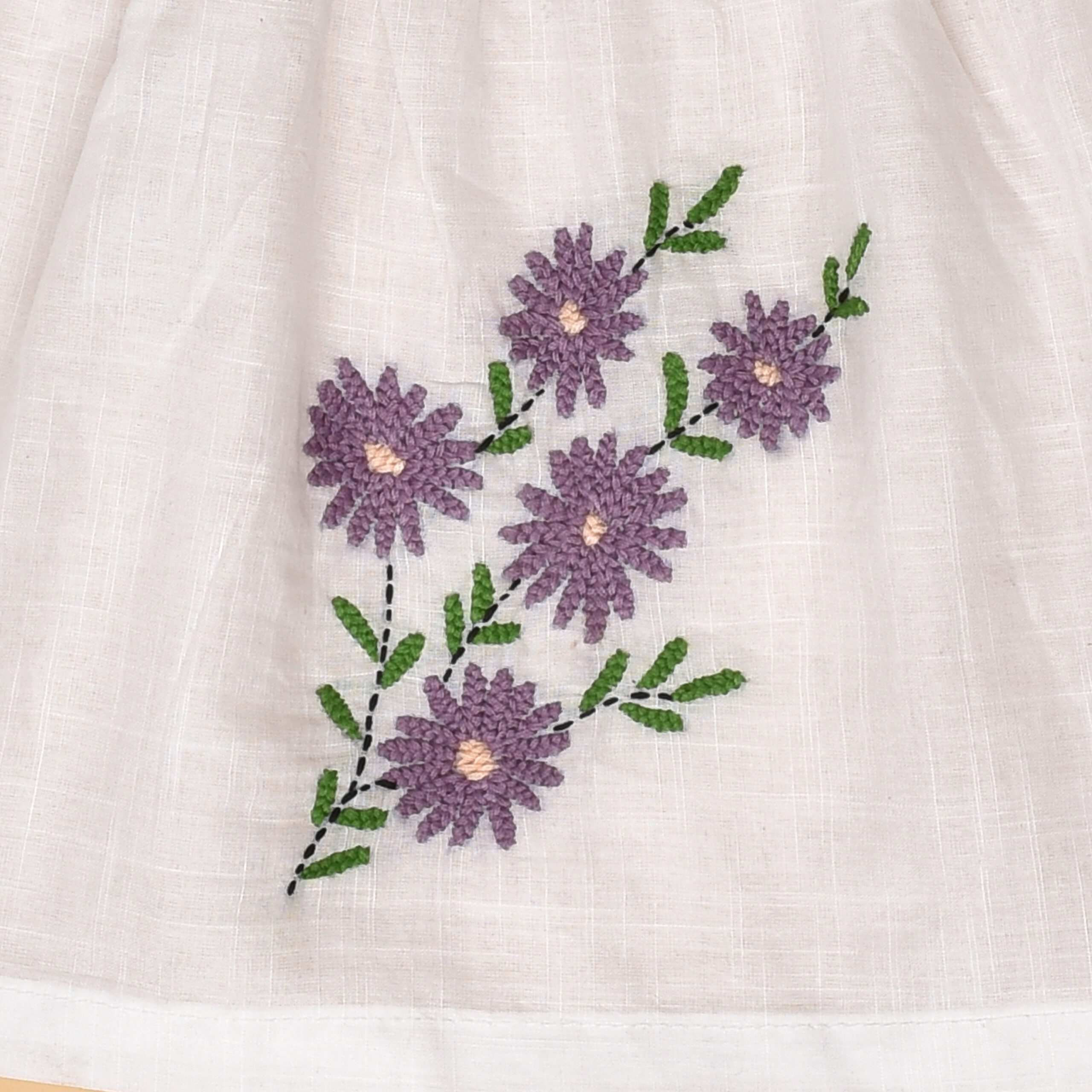 White Cotton Baby Dress with Lavendar Design Hand Embroidery