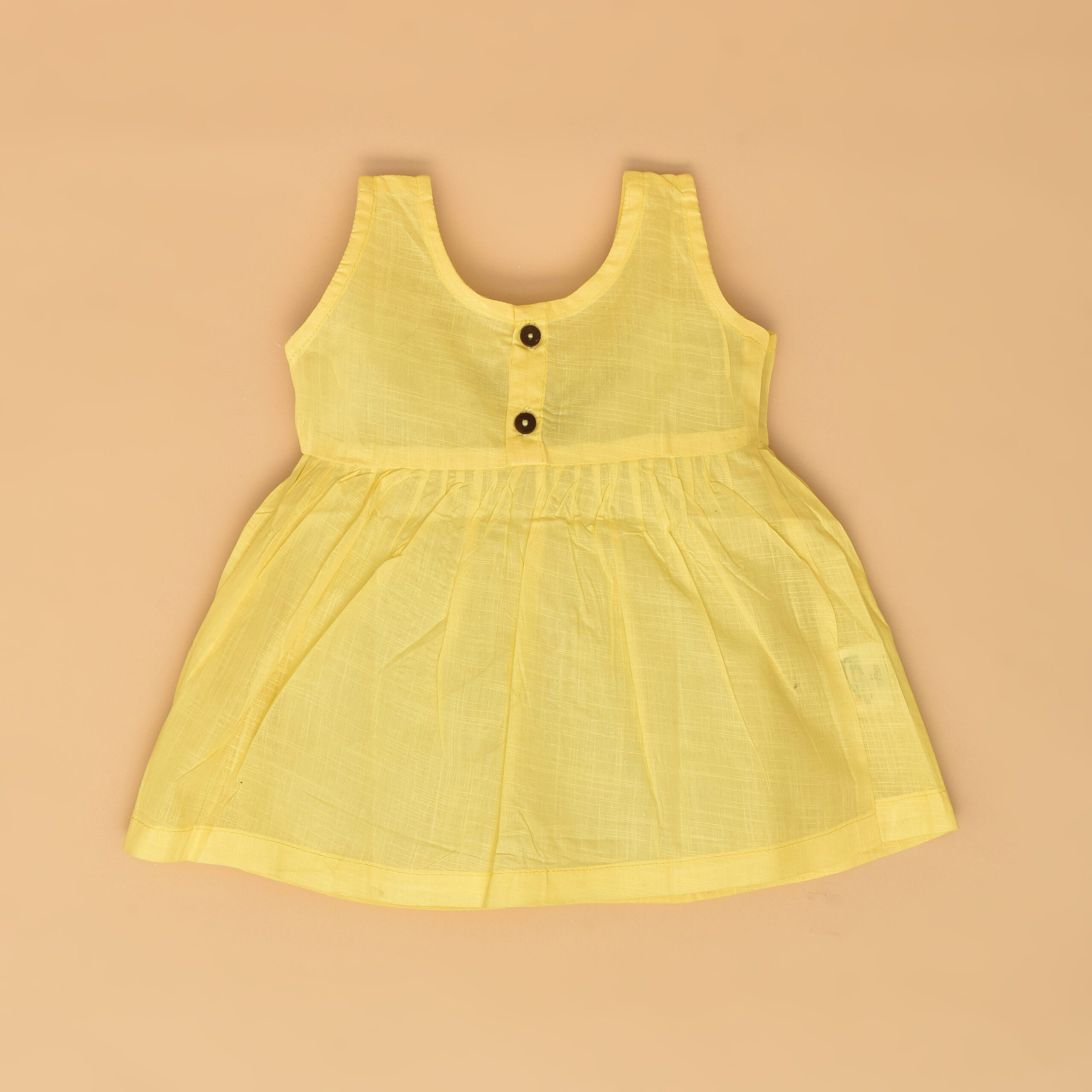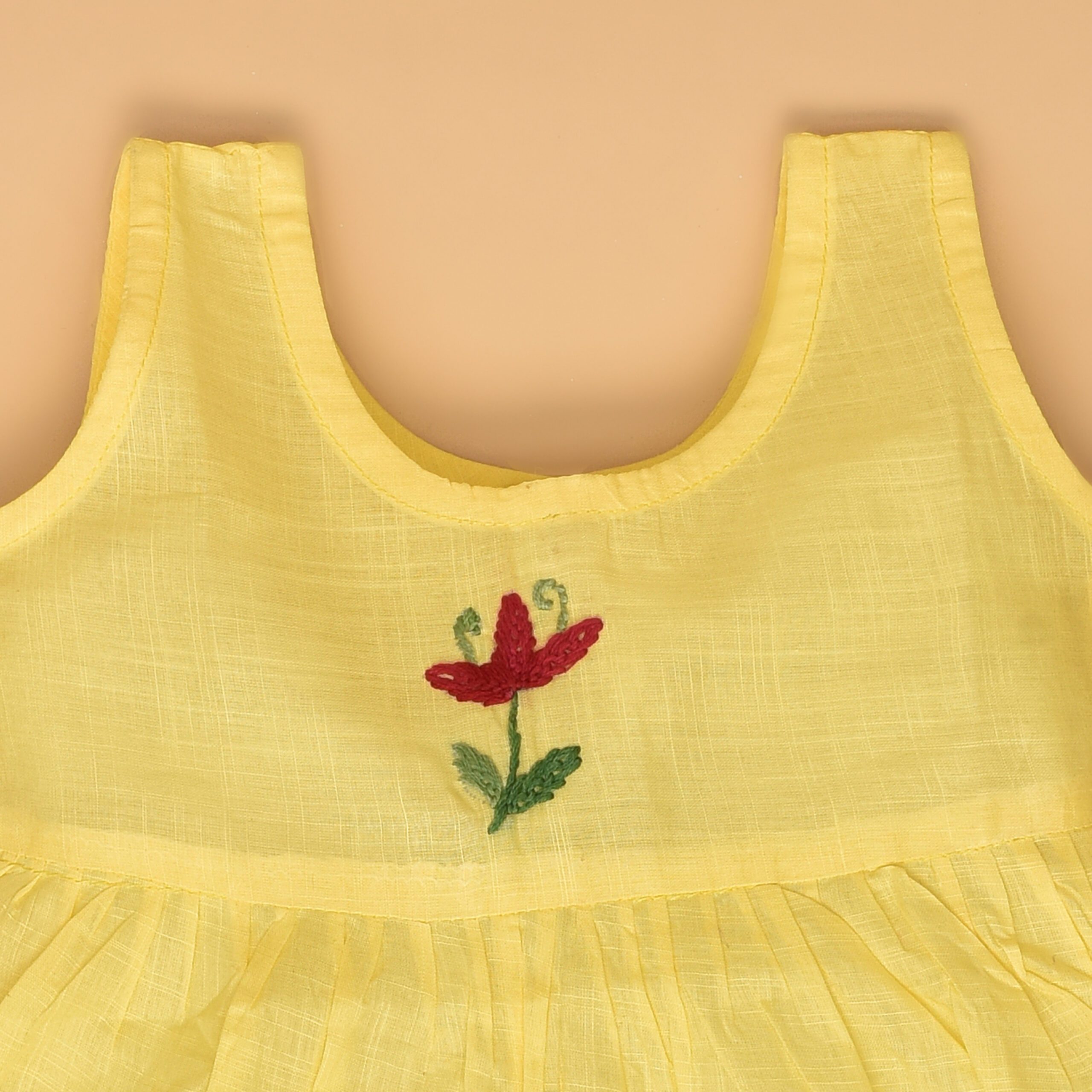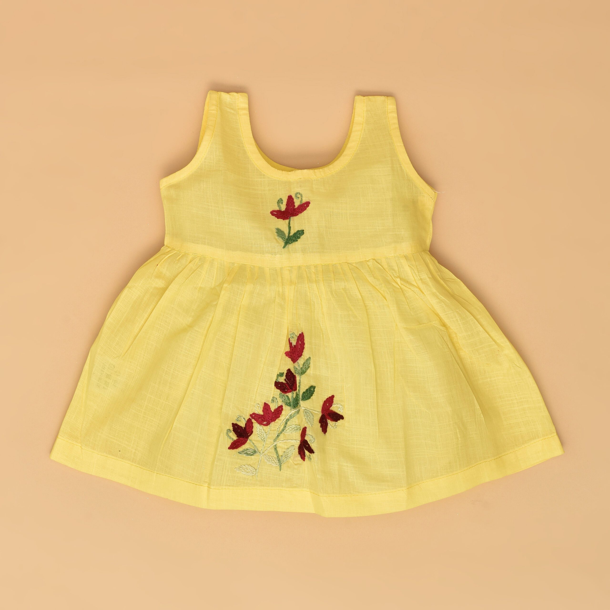 Yellow Cotton Baby Dress with Periwinkle Design Hand Embroidery